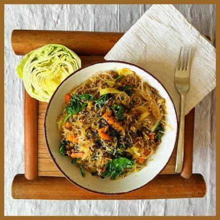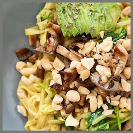 Die Zwiebeln halbieren, in Scheiben schneiden und in Olivenöl gut anbraten. Währenddessen den Zucchino halbieren, der Länge nach vierteln und in schmale Stücke schneiden. Zucchino zu den Zwiebeln geben und braten. Leicht salzen.
