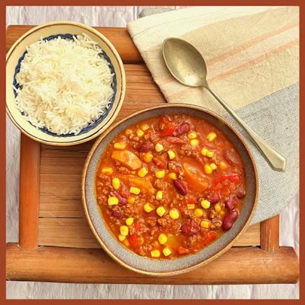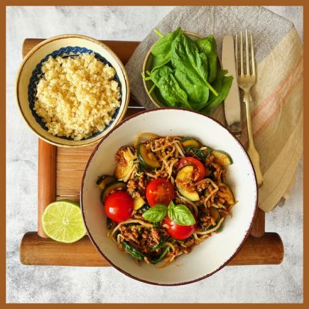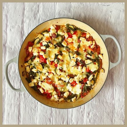 Ich habe den Zucchinikuchen mit einem Paprikagemüse und etwas Salat gegessen.